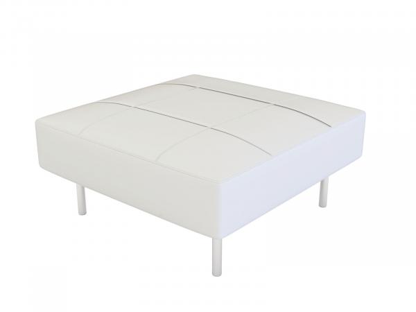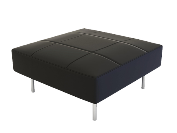 Modular white or black vinyl square box-stitched ottoman with chrome legs. Dimensions: 34"L 34''D 15"H