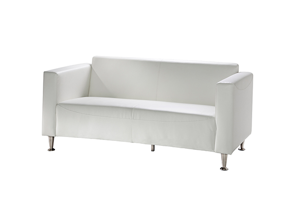 Clean and modern bright white vinyl loveseat with silver brushed metal legs is comfortable and stylish. Size = Length 61", Depth 30.5' , Height: 28.