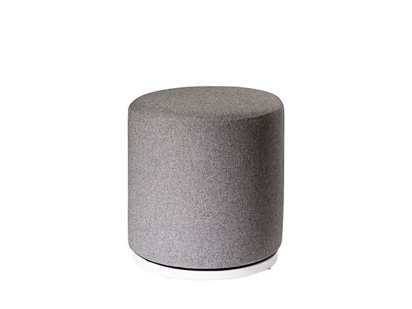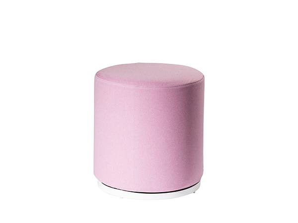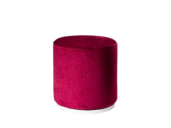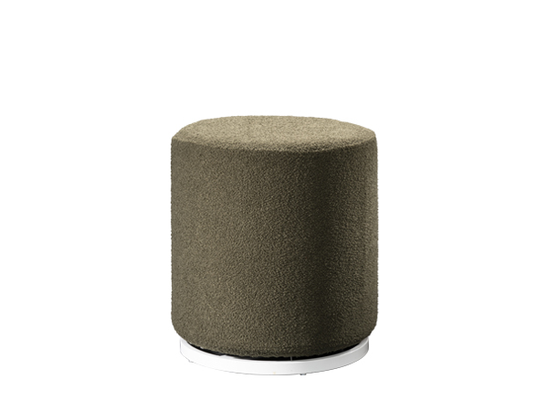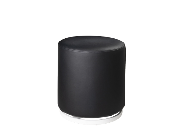 Marche Swivel Ottoman in vinyl and fabric come in a variety of colors. Includes a white gloss, swivel metal base. Dimensions: 17" RND, 18" H
