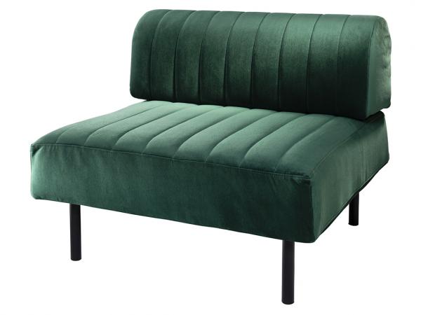 This retro-vibe, green velvet square low back chair with a modern flair is compact, comfortable and stylish. Dims: 34.5" L x 34.5" D x 27" H