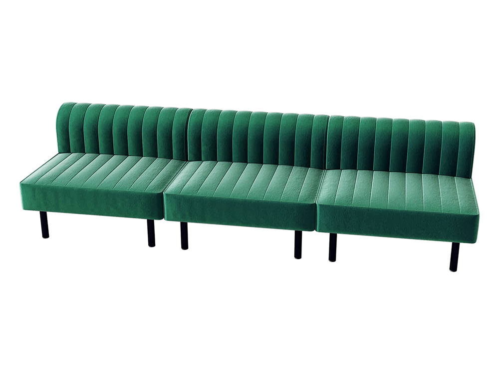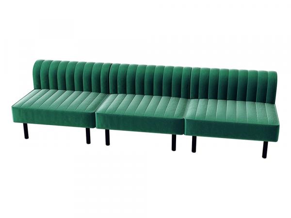 This retro-vibe, green velvet square low back sofa with a modern flair is compact, comfortable and stylish. Dims: 103.5" L x 34.5" D x 27" H
