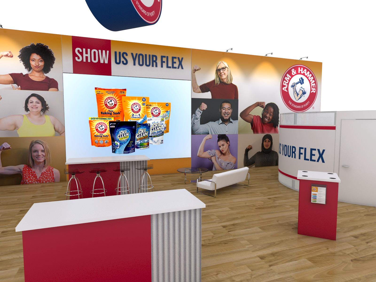 There are two inescapable trends in trade show exhibit design: modular wall systems and LED video walls. Modular wall systems are full-size aluminum extrusion panels designed to hold either direct or fabric print graphics. LED video walls are, well, big video walls built using connected LED panels. The GK-5600 and GK-5400 use both, extensively. The main 60 ft. or 40 ft linear structure is built using Gravitee One-step modular walls. Gravitee assembles without tools and loose parts, making I&D much faster than traditional custom or aluminum extrusion construction. Within the Gravitee framework, there's a 176.5" x 118" LED Video Wall.