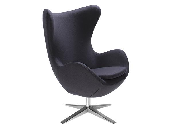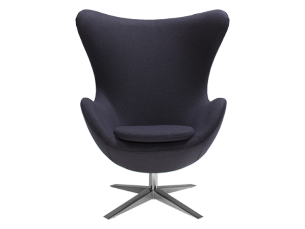 Iconic charcoal gray swivel chair with chrome base lends a hip vibe to modern designs without sacrificing comfort. Dimensions: 35"L 27"D 40"H