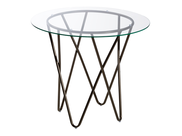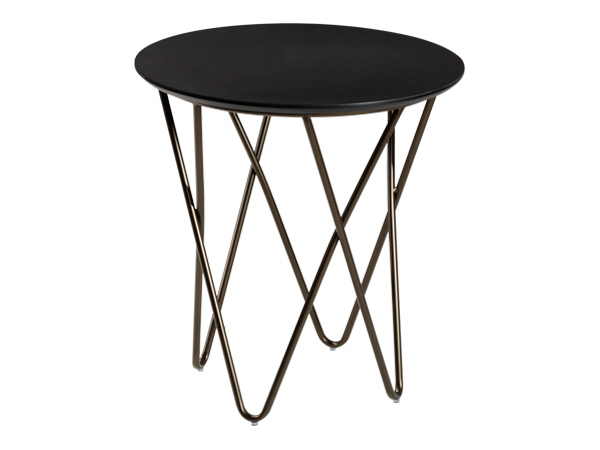 Laminate or glass cocktail table with Mid-Century Modern iinspired bronze base. Dimensions w/ Laminate Top: 20.5"RND 21.25"H; Dimensions w/ Glass Top: 24"RND 21.25"H | 17.25"H