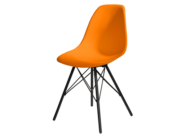 Molded plastic seat with black metal tower base. Seat available in Azure Blue, Black, Goldenrod Yellow, Gray, Orange, and Walnut-look.