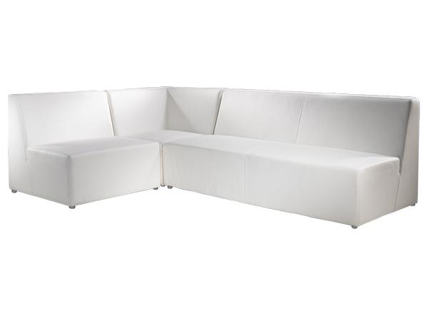 Elevate your space with this comfortable modern indoor/outdoor sectional in a clean white vinyl or rich, linen-textured fabric. Create single seating arrangements or pair with the modular Brighton Collection to create alluring sofas, sectionals, and large lounges. Dimensions: 98.5"L 65"D 29.75"H