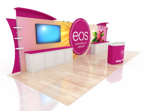 Every exhibitor wants a custom-looking exhibit that also reconfigures. The VK-3013 series does that... and so much more! The Gravitee Modular structure means you can easily reconfigure the exhibit from a 30 ft. inline to a 20 ft. to a 10 x 10 display. All while keep the components that make this design beautiful and practical. That includes the distinctive headers, wings, and large graphic backwall. Along with shelves and a monitor mount.