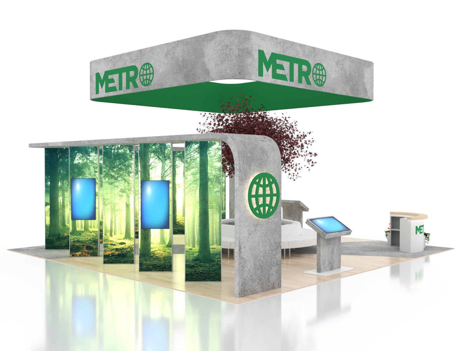 The ecoSmart Island Exhibits are design-driven, reconfigurable, and high-impact. Many islands can easily be reconfigured into 10 x 10 or 10 x 20 displays for smaller shows. We use the most sustainable materials on the market, and ecoSmart displays prove that you don't need to look green to be green, and you don't need to spend more either. You'll always get the best of both with an ecoSmart.