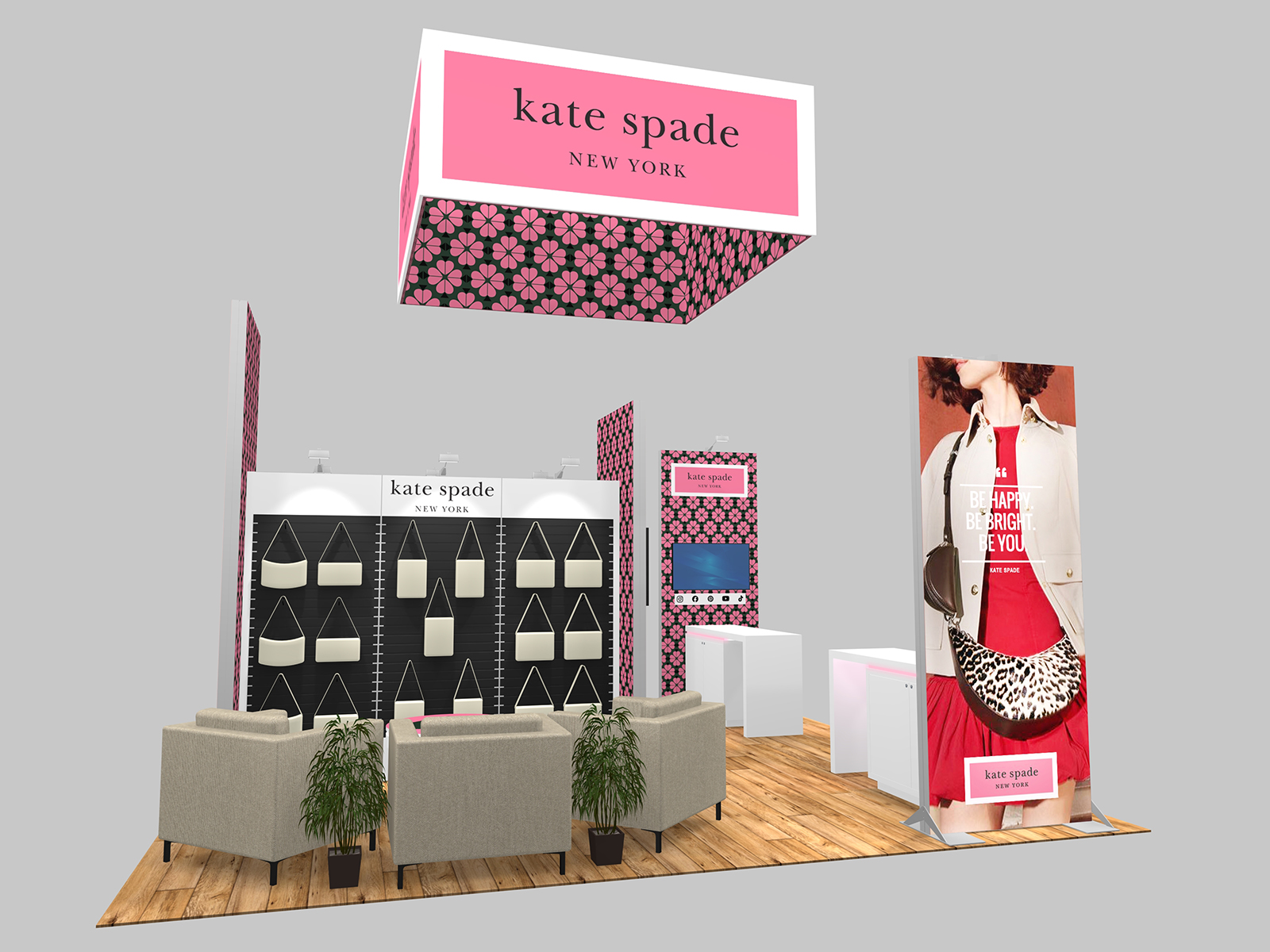 What’s the mission? And how does that mission serve to attract and facilitate engagement in the booth? Every exhibitor should ask themselves those questions before designing a new exhibit. The RE-9215 hits the mark on both questions. The design emphasizes interactions with attendees, whether at the reception counters or in the lounges. Those interactions are supported with monitors, large format graphics, and product displays.